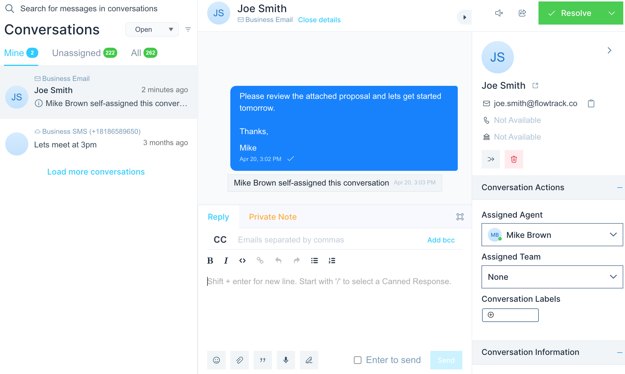 All your customer communication in one place plus a website chat widget to collect more leads. Automate messages, responses, and followup with our drag & drop Flows.